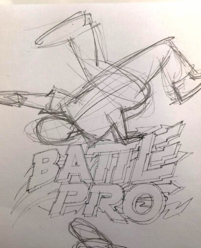 Il y a une tradition au Battle Pro, c’est qu’un dessinateur soit présent pour capturer les moments. Un artiste loin du hip-hop et du graffiti qui propose une autre vision du breaking.