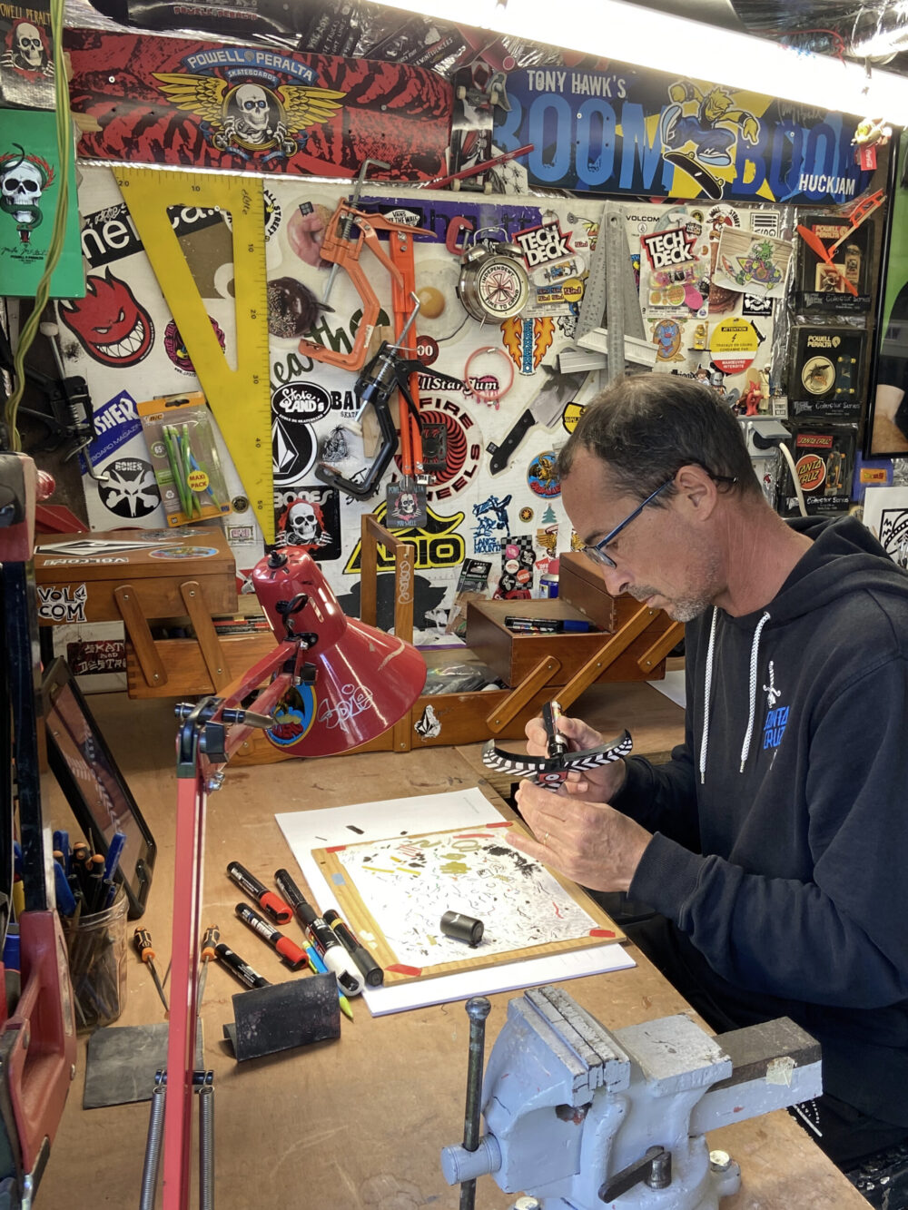 « Dans les années 2000, mon coté bricoleur m’a poussé à créer du mobilier avec des planches de skate. J’ai fabriqué des fauteuils notamment. Et il y a cinq ans après un changement de direction professionnelle, j’ai ressenti à nouveau le besoin de créer en lien avec le skate.