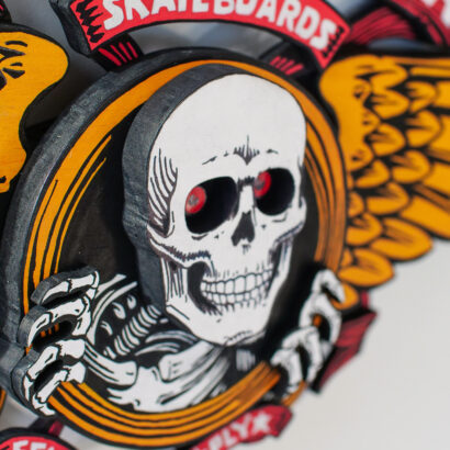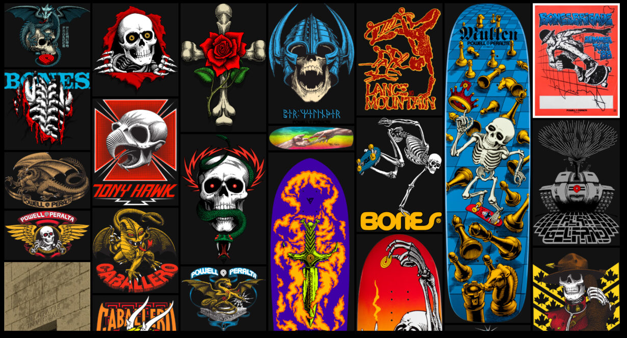 « Ce que j’aime dans le skate des années 90, c’est la diversité des dessins et des formes des planches. Plus particulièrement les graphismes de la marque californienne Powell Peralta, réalisés pour la plupart par VCJ – Vernon Courtland Johnson [voir ci-dessous].
