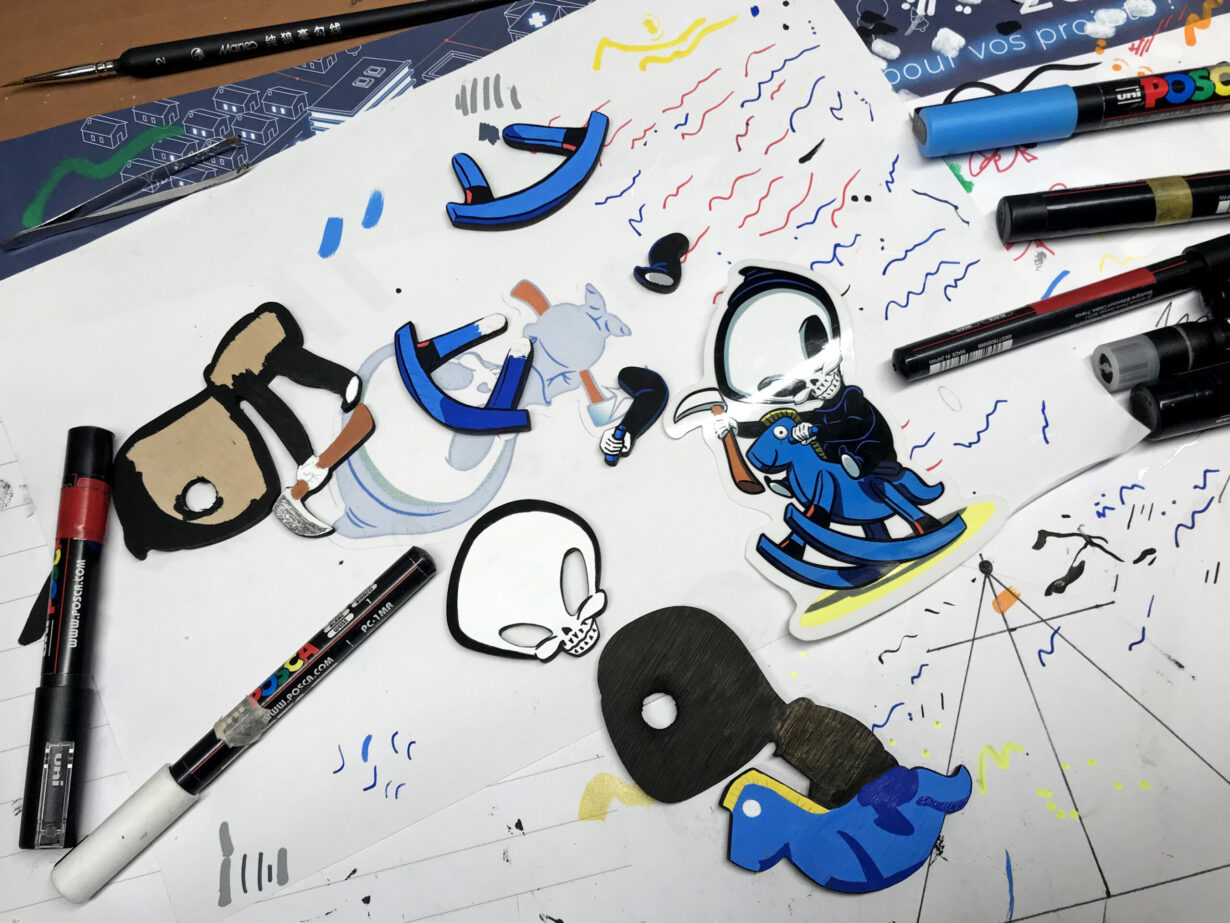 « À 13 ans, quand j’ai commencé à skater, le POSCA est entré dans ma vie : le seul marqueur à l’époque capable d’écrire et de dessiner sur le grip des planches. J’avais toujours un PC-8K dans la poche histoire de laisser ma signature un peu partout ! Ils m’ont accompagné toute mon adolescence et aujourd’hui d’autant plus puisque j’utilise toute la gamme pour mes créations.