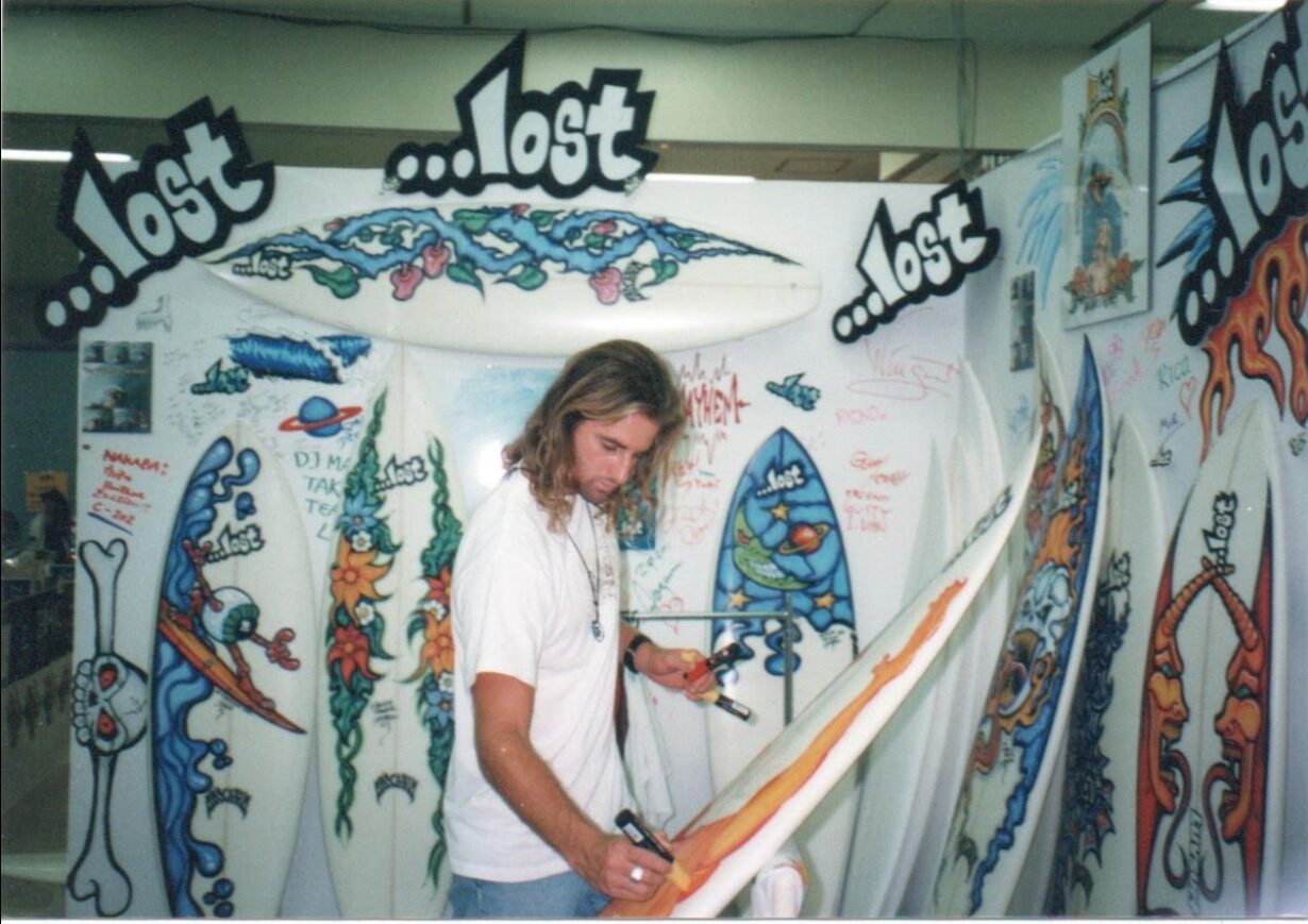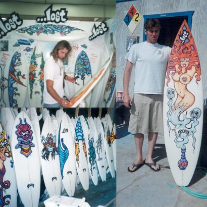 Matt et moi avons vĂ©cu une aventure folle pendant ces derniĂšres annĂ©es, on a eu la chance de laisser une trace artistique et une influence dans le monde du surf. Pas mal pour deux gars qui voulaient simplement s’amuser, peindre et surfer! Cela fait maintenant 30 ans que je collabore avec Matt Mayhem Biolos et Lost Surfboards, et on n’a jamais cessĂ© de crĂ©er ensemble. »