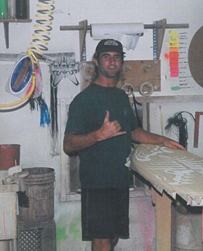 « En 1996, quand je vivais Ă  HawaĂŻ, j’ai vu mon ami Strider surfer Ă  Pipeline avec une planche peinte avec des marqueurs POSCA — c’était la premiĂšre fois que je voyais quelqu’un avec un surf customisĂ© comme je le faisais. Je lui ai demandĂ© qui l’avait peinte et il m’a rĂ©pondu: “Mon ami Matt, il habite Ă  San Clemente, tu devrais le contacter.”