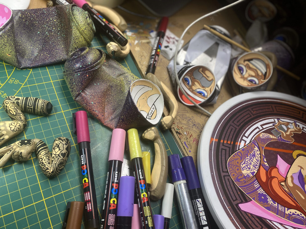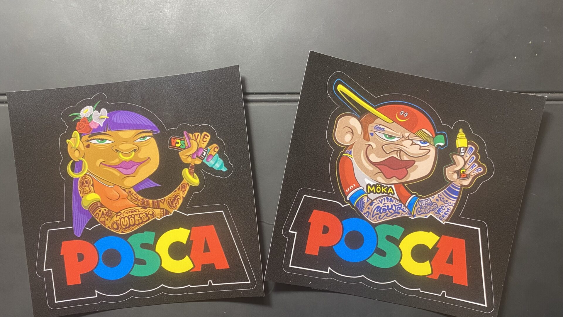 Nous étions passés à Bordeaux chez MÖKA il y a quelques années maintenant. Il était très actif, installé sur un petit bureau dans son appartement et les différents POSCA faisaient partie de son quotidien créatif. Il y avait aussi une mallette en collaboration avec lui sur le point de sortir, avec des tips et un puzzle à colorier.